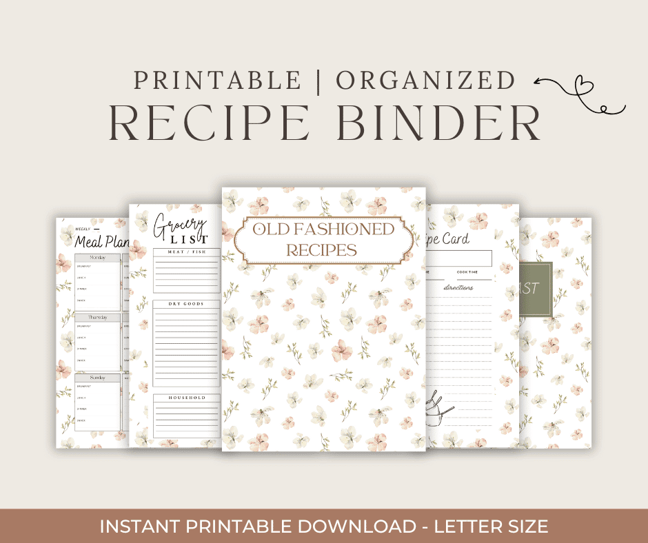Bring order and beauty to your kitchen with this printable Old-Fashioned Recipe Binder Kit.